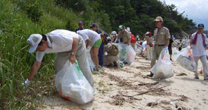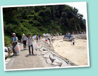 比較的最近整備された海水浴場ではあるが、想像以上のゴミの量に、参加者のみなさんは驚かれていました。 |