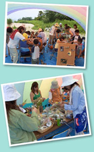 清掃活動後には、子供向けにネイチャーマーケット(かまぼこ板工芸、うぐいす笛作り)も開催されました! |