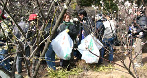 梅林公園には、“楊貴妃”はじめ50種類、約1300本の梅があり、梅観賞を楽しみながら、清掃活動を行いました。 |