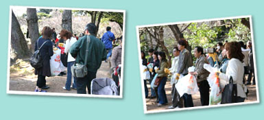 | 例年、3月の第1土、日曜日に、岐阜梅林公園一帯で開催される「ぎふ梅まつり」期間内に行われた今年のクリーン・キャンペーン。今年もたくさんの来場者があり、梅を見に来られた方も、数多く飛び入り参加して下さいました。参加人数は187名。 |