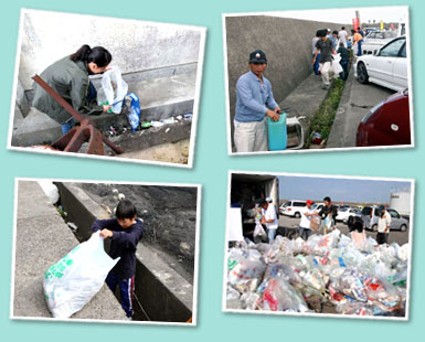 午後からは、青島漁港一帯の清掃をしました。こちらも、飲料・食品系のゴミが多かったですが、充実した清掃活動となりました。子供から大人までが楽しみながら清掃活動をしていました。 |