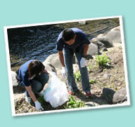 晴天に恵まれた中、地元の小学生や高校生達も参加して、楽しく一生懸命清掃活動に取り組みました。 |