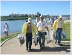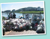 会場となったのは、旭川河川敷京橋付近。 参加者を3つのグループに分け、清掃を開始しました。 |