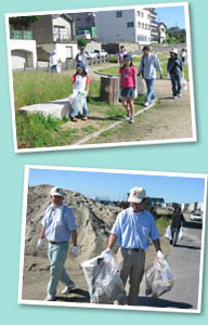 散歩道の場所はタバコの吸殻等が中心で目立つゴミはないが、草むら、橋げたの下、溝、工事現場等にゴミが集中していました。また、車の不法投棄が数台あり、それが他の可燃・不燃ゴミの投棄の温床となっていました。 |