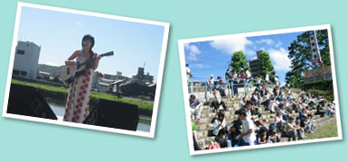 清掃活動後には、我那覇美奈さんによりライブも開催されました。活動後の疲れも我那覇美奈さんの歌声で癒されていたようです。 |