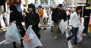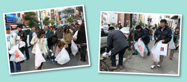 大阪市のアメリカ村御津公園周辺を中心に、北廻りと南廻り、湊町リバープレイス間の3コースに分かれて清掃。若者が多く集まるスポットでのイベントは、エコに対する意識の普及にも効果があったようです。 |