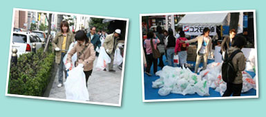 ライブゲストはMOGA、東風、navy&ivory、D-51、散打、奥村愛子、と6組もの豪華なアーティスト。アーティストも率先してエコに対する問いかけを行ったり、一緒になって清掃活動に参加。若いファンの清掃活動への参加やエコに対する啓蒙に力を添えてくれました。 |