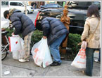 道路に沿った植え込みなどには、普段は見落としがちなゴミがたくさん。食べ物の包装ビニールや、缶、瓶、ペットボトルが放置されていました。 |