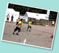 清掃活動後は、ビーチサッカーで各チームが熱戦をくりひろげました。