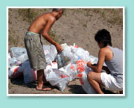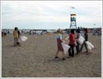 大会予定参加チーム全員が参加し、そのチームの応援団や、当日バーベキューなどの海遊びに海水浴場に来ていた方も活動に加わっていただきました。 |