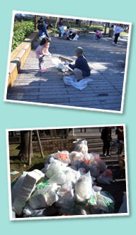 水際公園周辺、新町川沿いを中心に清掃活動が行われました。 |