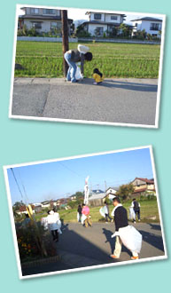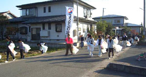 河北町一帯。役場、公園から会場の谷地高校までのルートを清掃しました。 |