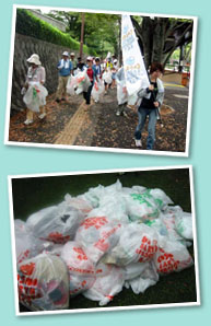 参加者は2班に分かれ、1班は亀山公園(丘陵)を、もう1班は公園周辺のパークロード一帯を清掃しました。 |