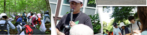 2日目も良い天気!3合目に集まり、まずはみんなで準備体操をします。そこから、5合目までのエコトレッキングに出発!