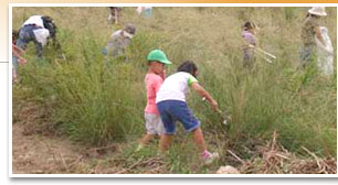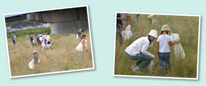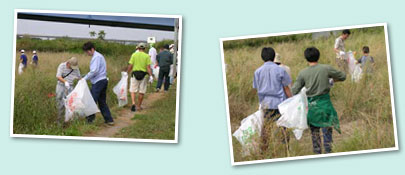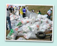 緑地公園を東と西の二手に分かれて、清掃していきました。草むらの陰には実にたくさんのゴミが隠れていました。 |