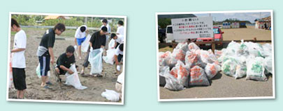 鷹巣海水浴場は、市の中心からも近く、夏以外も釣りやウインドサーフィンなどが楽しめる、福井でもよく知られた場所。その分、落ちているゴミの量も夥しいものがありました。 |