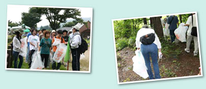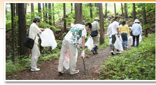 | 今回の清掃場所は福島県福島市にある四季の里。晴天の中、グループを4つに分け、森林遊歩道や荒川沿い、国道沿いの清掃を行いました。 |
