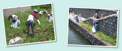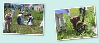 | 4つのグループに分け、小樽の歴史的造作物の景観を楽しみながらの清掃活動です。交通記念館周辺の廃線・旧手宮線沿いは2グループに分けて、手宮公園、小樽運河周辺をそれぞれ1グループが担当。 |
