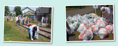 小樽市観光協会ボランティアの人達が各ルートに参加してくれました。小樽の観光案内と同時にゴミ環境問題も兼ねた役立つ話を解説して下さり、実りある清掃活動となりました。 |