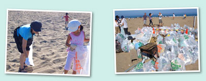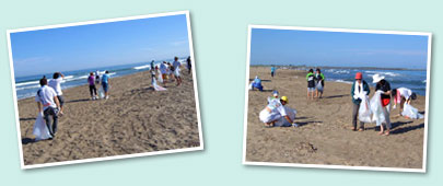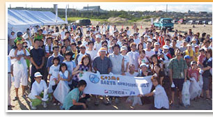 | 石川県内灘町の内灘海水浴場を清掃しました。去年も同じ会場だったことから、口コミで話が伝わり、地元サーファーの方達をはじめ、地元の方たちも積極的に参加、すっかり地域に根付いたイベントに。 |