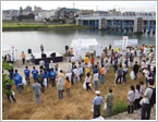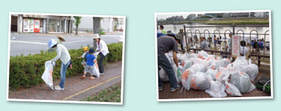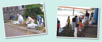 ゴミとしての重さはありませんでしたが、たくさんの小さなゴミが次々と集まります。ゴミがなくなると、河岸も見違えるように綺麗に映えてきます。 |