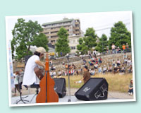 おおはた雄一さんのライブが、清掃後の疲れをほぐす癒しとなりました。おおはたさんのアコースティック・ギターでの素晴らしい演奏と歌声を楽しむ心地よいひととき。 |