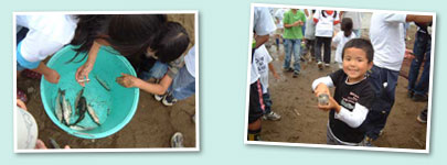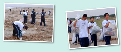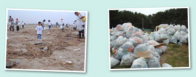 飲み残されて置かれたままの空き缶や、ビニールゴミなども多く、それを拾っていく小さな子供たちにも、自然と環境のことを考えるいいきっかけになりました。 |