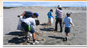 中田島砂丘は日本三大砂丘の一つにも数えられるほど、美しい砂丘です。大小の砂丘が広がり、風紋も美しく見られる土地だけに、ゴミはほんの少しでもかえって目立つもの。ゴミのない浜辺を目指したいものです。 |
