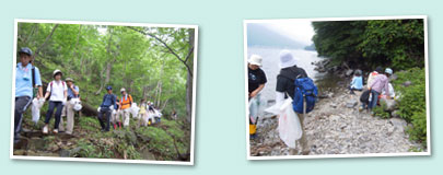 湖畔付近はゴミ量は少ないものの、釣りに使った後のテグスやキャンプ後のゴミなど、持ち帰りし忘れたり、放置したりと思われる小さなゴミが多数見つかりました。 |