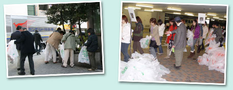 普段は見過ごしがちな足もとや、道ばたにあるゴミを、小さなゴミでも手分けして拾っていきました。 |