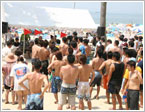 清掃が終わる頃には、暑さも最高潮!その中でさらに汗をかきながらのビーチつなひき大会です。当初の応募組以外にも飛び入り参加が続々あり、更に応援も加わって白熱した盛り上がりとなりました! |