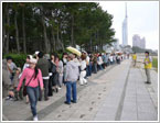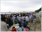 時折雨もぱらつくあいにくの曇り空の中スタートです。それでも若い女性の方達を中心に、400名近くの方達が集まってくれました。 |