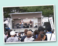 清掃が終わった頃にはうっすら晴れ間も見え始めました。恒例のゲストライブにはメジャーデビューも間近な、期待のデュオ・ヤドカリ、そして人気ボーカルグループ、Scoop On Somebodyが登場!素敵な歌声と、楽しいトークで盛り上がりました。 |