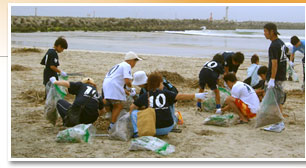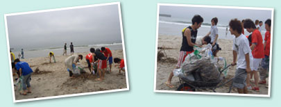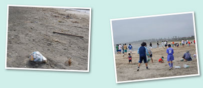 清掃後のビーチサッカー大会目指しての参加者が多く、その数は300人を軽く超えました。20代30代の男性グループが中心でしたが、もちろん、チームの応援も兼ねて、家族や友人、子供達もたくさん集まり、清掃に参加してくれました。 |