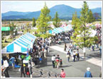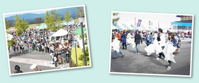 当日、会場である中津川東美濃ふれあいセンターで開催されていたのが、中山道中津川ふるさとじまん祭りです。この祭りは、たくさんの出店が並び、近隣の名産品や特産品、和菓子などが格安で販売される、地元の人たちにはとても人気の高いお祭り。 |