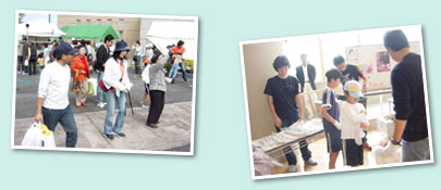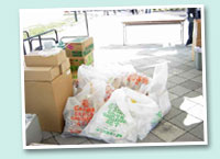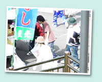 快晴の中、朝からたくさんの人人人。その中に混じっての清掃活動でした。やはり、試食や即売会など、食べ物がメインとなるお祭りのため、会場ではクリーンキャンペーン以外にも、地元の中学生やボランティアの人たちによる、積極的なゴミ回収、分別への呼びかけが繰り広げられていて、まさに人がたくさん集う祭りの場として見習うべき姿でもありました。