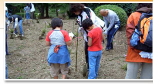 また、過去のクリーンキャンペーンの活動で植樹した木々の成長、様子も観察しました。少しづつ育つ緑を見て、繋げていく自然、生命の大事さを感じます。 |