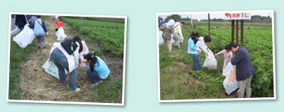 植樹、清掃、と自然を守る大事な活動が終了した後は、その自然からのありがたい恵みを堪能する、りんご狩りです!赤く色付き、まさにこれから旬を迎える嶺りんごを一つ一つ選ぶ皆の顔には笑顔が溢れていました。 |