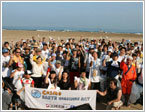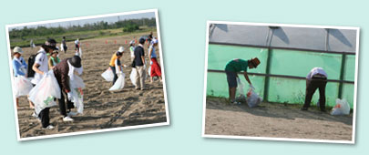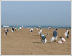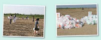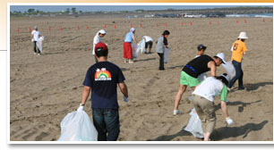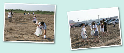 内灘海水浴場は、日本海側の海水浴場に多く見られるように、車両立ち入りOKの海水浴場として人気です。浜辺の外側部分、車両が立ち入り可能な区域を集中的に清掃していきました。 |