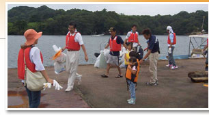 今回の清掃は、西海パールシーリゾートを中心とする鹿子前周辺、バスを使っての展望所付近、船で渡っての無人島、と、広範囲での実施となりました。どの場所も見事な自然と景観が楽しめる観光スポットですが、どこも同じように放置されたままのゴミがあちこちに見つかります。