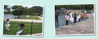 佐世保市の全面的な協力もあり、なんと400人を超える方が集まって下さいました。家族、友人グループから個人まで、まさに老若男女の参加です。 |