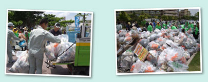 那覇市の全面協力で、大量のゴミの回収も、ポイントごとに収集車が待機、混乱することなくスムーズに進めることができました。
