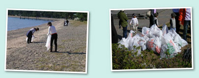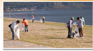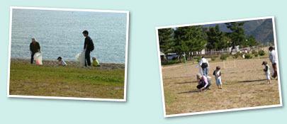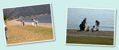 奥琵琶湖でもその水の美しさで有名なサニービーチ。湖畔ということから、海岸清掃のように、漂着ゴミの数は少ないものの、キャンプ場施設としても人気のためか、やはり人が出したゴミがほとんどです。 |
