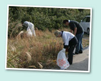 マリンピア沖洲のバスターミナル、漁港の堤防一帯、雑木林一帯と3カ所をそれぞれ清掃です。