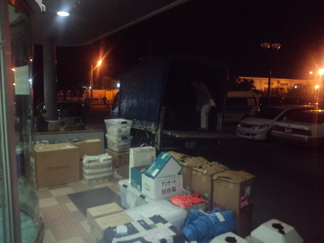 今帰仁村での設営を終えて戻ってきたら 社内にあった備品が全部玄関へ