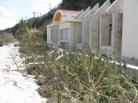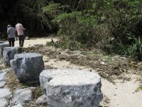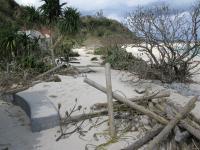 ただ、台風による風と高潮で防潮林の砂止めに使用していた木の杭が辺りに散乱しています。