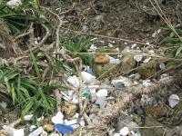 台風や波で運ばれてきた発泡スチロールやペットボトルなどのゴミが多く漂着しています。