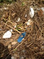 一見綺麗に見える砂浜も、奥に目をやるとゴミが。