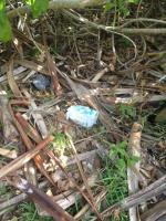 こちらは海岸と東屋の間にある防潮林ですが、台風による高波の影響か、砂が全部持ち去られていて、根がむき出しになっているのと、左側の写真にある杭がほとんど全部持っていかれて浜に打ち上げられていました。