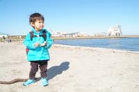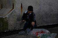 くぼみのなかに捨ててあるごみを拾う作業。腰にきます。